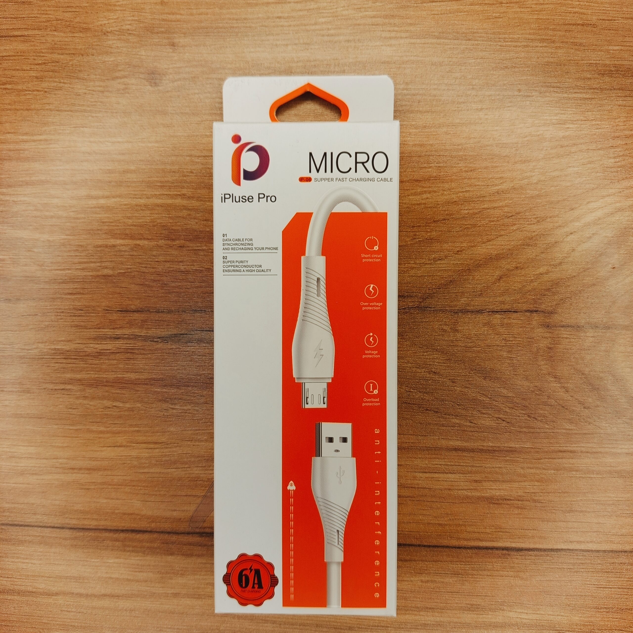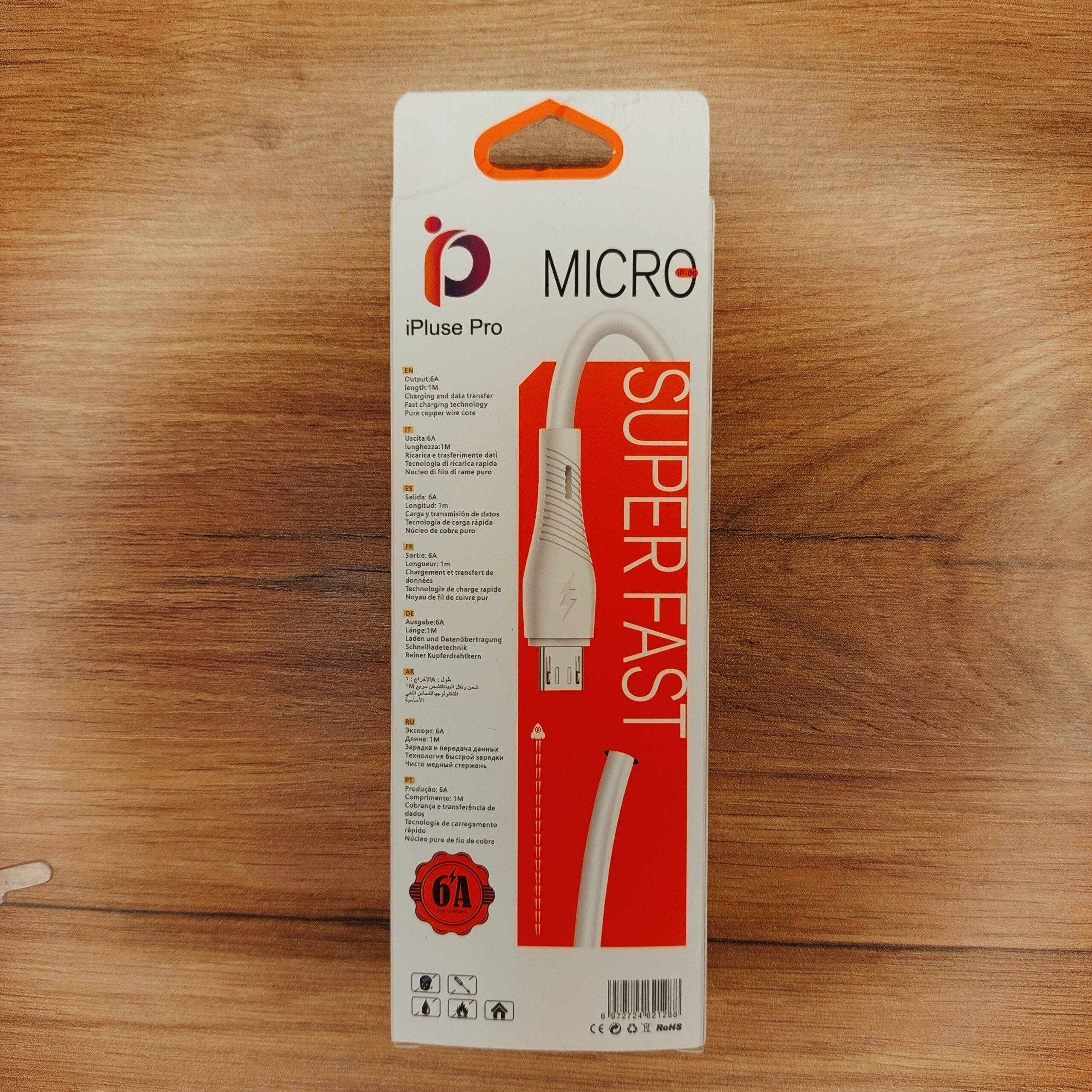 iPluse Pro IP-06، کابل Micro USB 6 آمپر با هسته مس خالص، روکش تقویتشده و ۵ لایه محافظت هوشمند! شارژ فوقالعاده سریع + انتقال داده – مناسب گوشیهای قدیمی، پاوربانک، اسپیکر، دسته بازی.