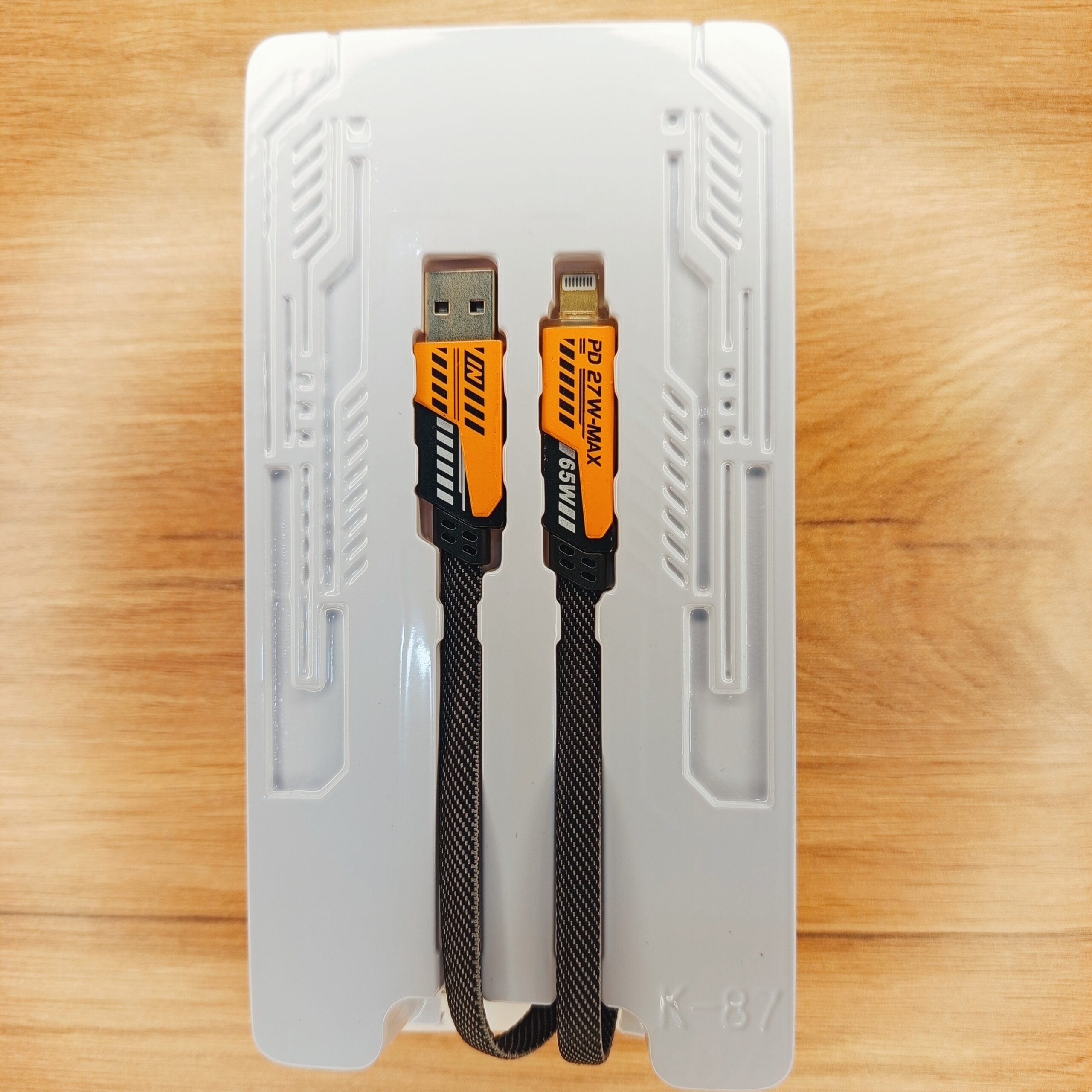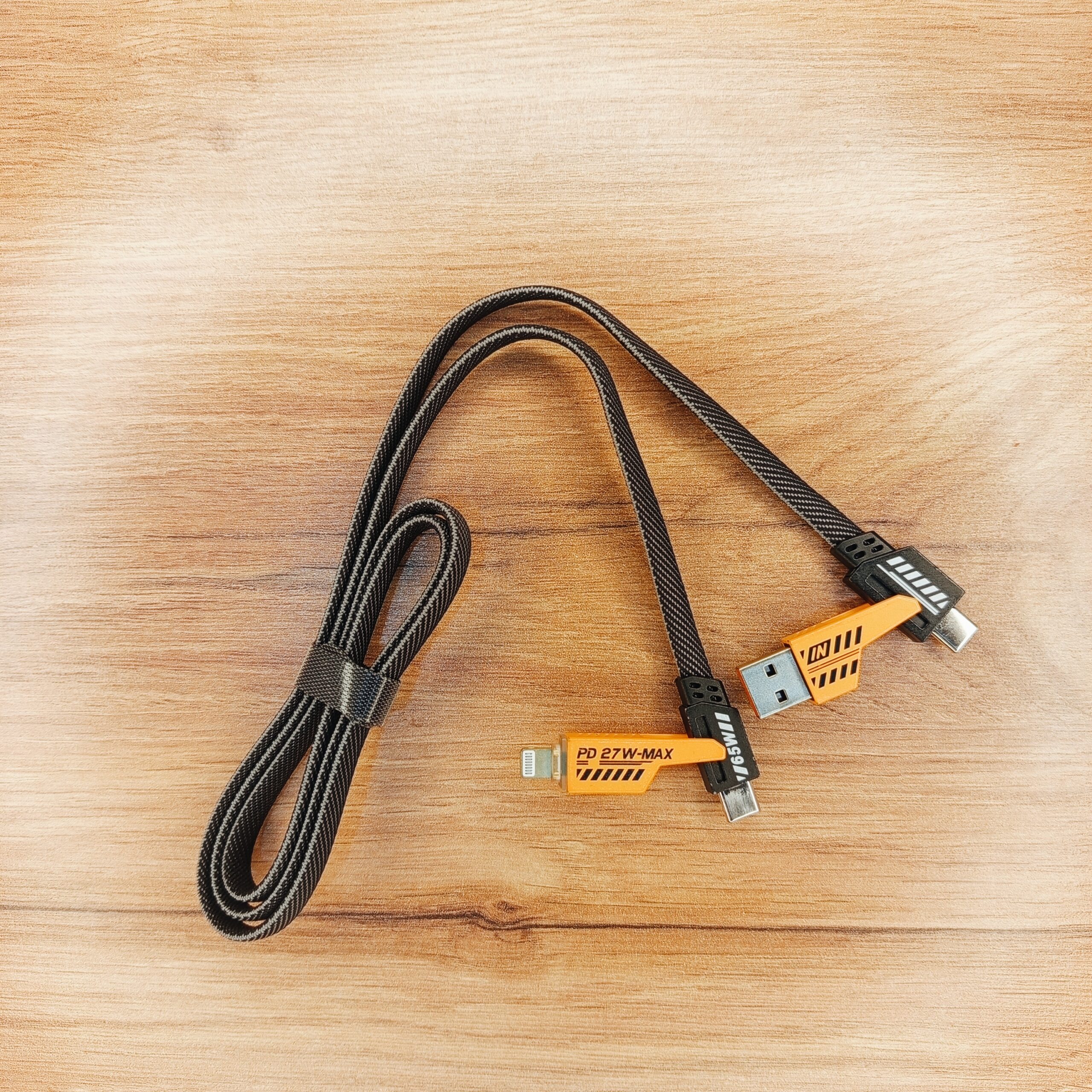 - Micro USB روکش نایلون بافته تخت، کانکتورهای آلومینیومی نارنجی-مشکی، چیپ هوشمند – شارژ لپتاپ، آیفون، اندروید و دستگاههای قدیمی با یک کابل!